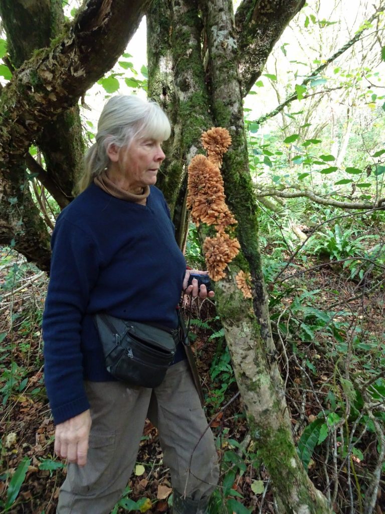 The bottom photo shows Audrey Compton with some rare hazel gloves. This specimen was found by Anna Leatherdale in Audrey’s Blackley Wood. Anna wrote this very interesting article about it. It is an intriguing fungi with very specific habitat requirements and is an indicator of good air quality!