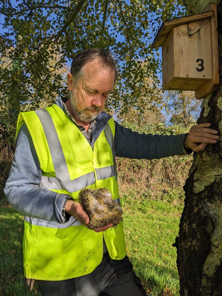 This autumn, the team has been busy working on key sites, including the churchyard and community orchard. They are pleased to report a 100% success rate, with nests found in every village nest box! In addition, a fantastic bug post has been installed in the orchard, generously donated by NHS New Leaf.