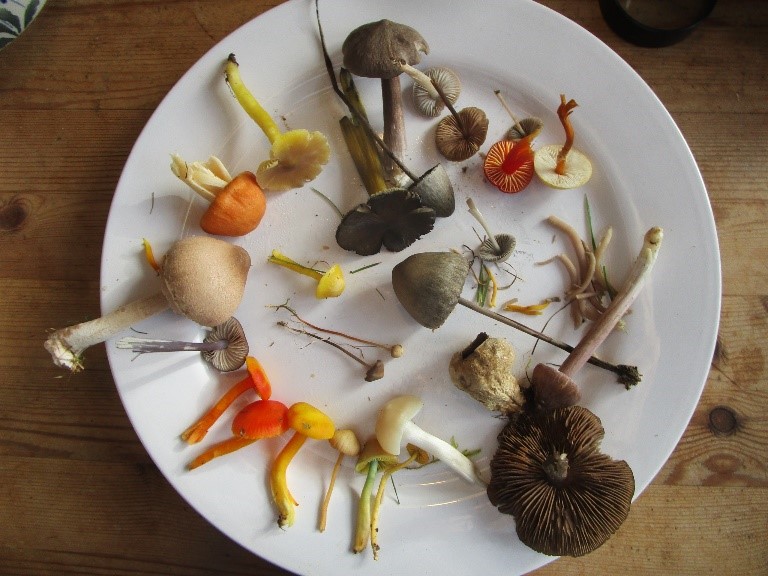 Many thanks to Audrey for leading two fantastic waxcap walks this month! We were fortunate to have a stunning days and delighted in discovering twirling pink ballerinas, the soap-scented oily, and the fascinating colour-changing parrots! As a special highlight, we even encountered the gruesome-looking Devil’s Fingers—a first for the farm this year!