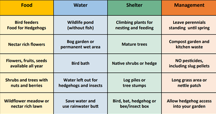 Chudleigh Wild (who are members of the Wildlife Warden Scheme) launched their wildlife gardening scheme in February 2021. At the time of writing (June, 22), over 100 households have signed up to the scheme. To apply, households must prove that their gardens meet some criteria from each of the categories in the table above. Households that meet the criteria receive a hand-made plaque to display on their garden gate. Wildlife gardening schemes are a brilliant way to engage communities and help wildlife on a large scale. UK gardens cover an area larger than all of our national parks combined!