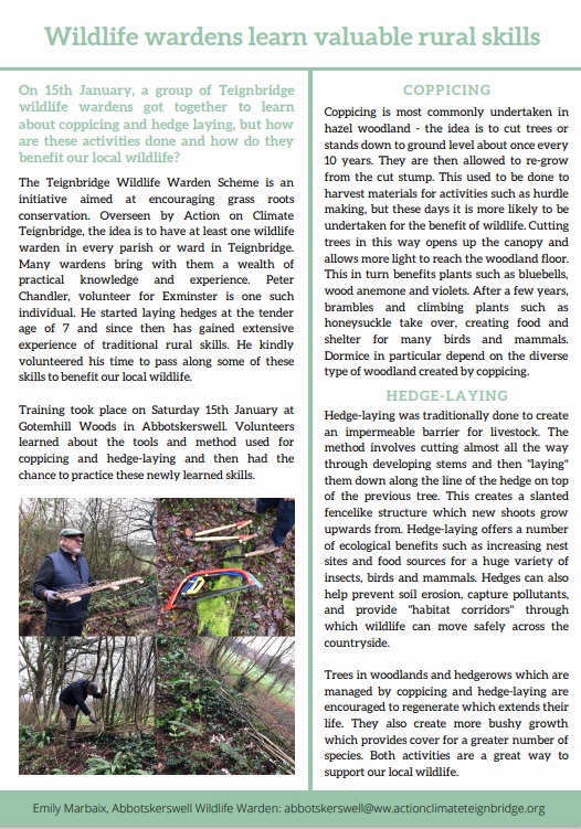 Wildlife Wardens from across Teignbridge write frequent articles for their parish magazines, local newspapers and social media pages. It’s a great way of reaching the public, and is used to promote wildlife gardening, promote citizen science projects, raise awareness of issues and celebrate wildlife sightings.