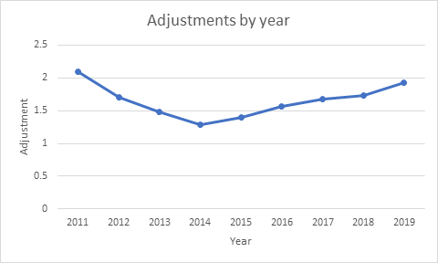 The adjustment varies considerably from year to year and does not have to have a relationship to recent changes in availability.