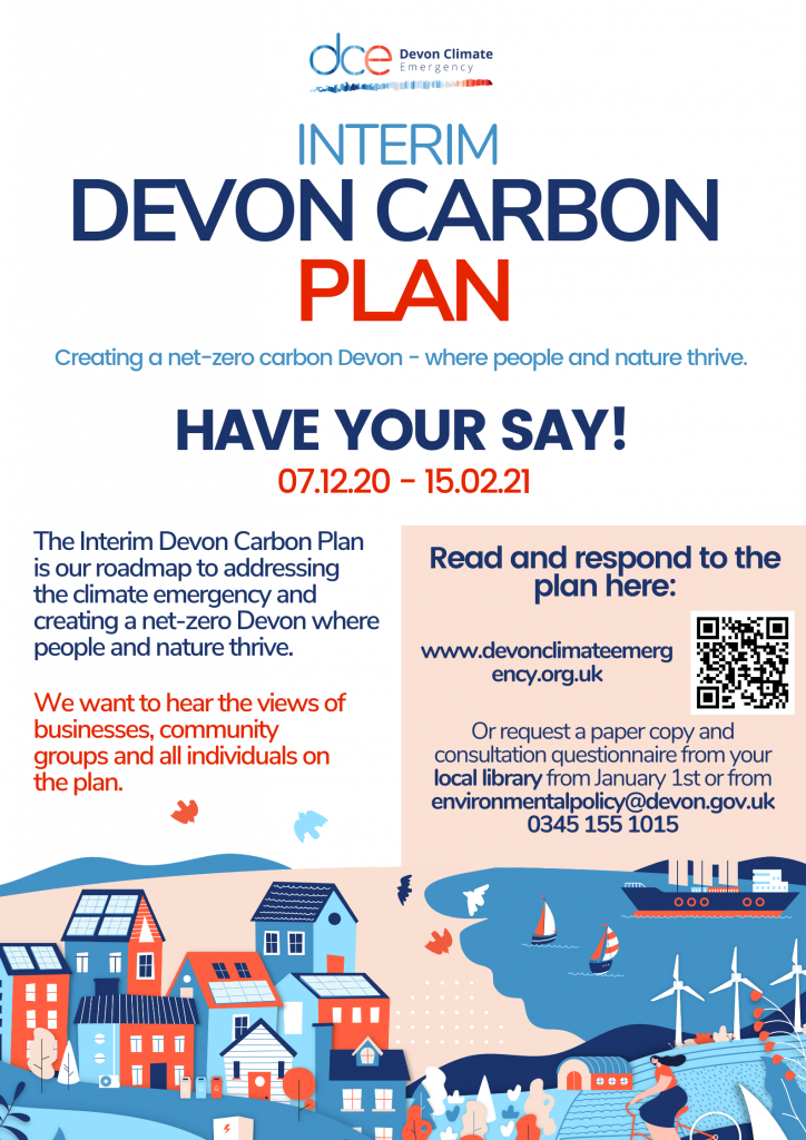 The consultation on the Interim Devon Carbon Plan closes on 15th February, writes John Watson. Please take the time to comment on the plan. In particular, tell the Devon Climate Emergency partnership (DCE) that a target date of 2050 for achieving carbon neutrality is much too late.