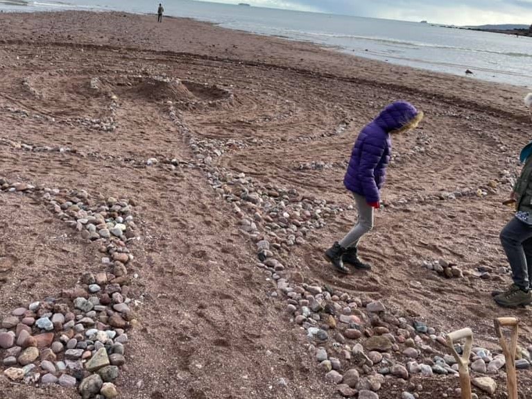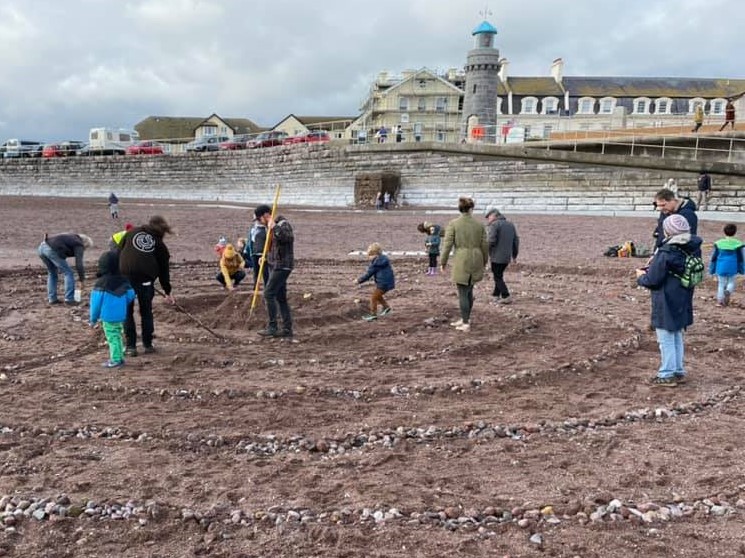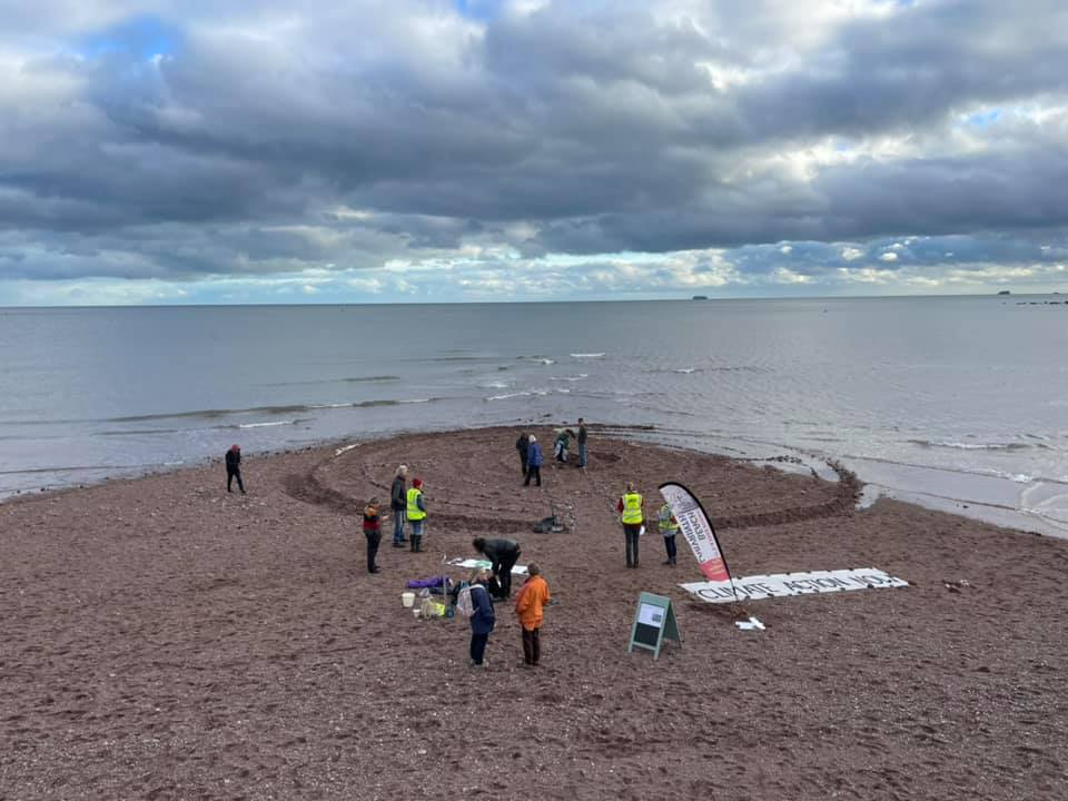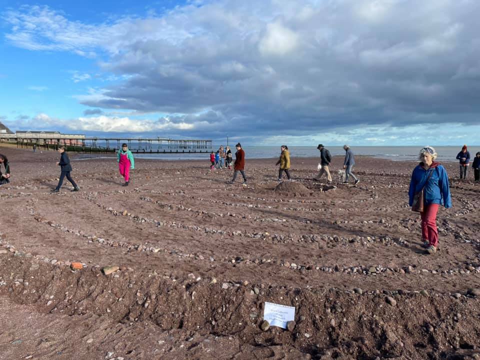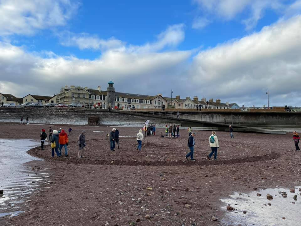 Around 100 people walked the labyrinth created on Teignmouth Beach last weekend for the Global Day of Action for Climate Justice. Plenty more watched the walkers from the promenade.