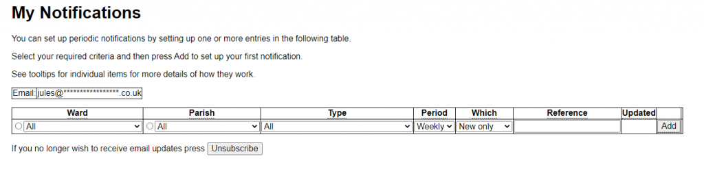 • Weekly notification of new applications in Bradley ward.