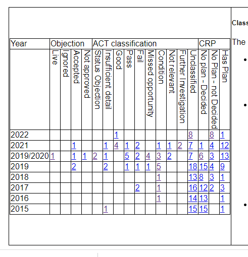 • Documents with links – we now collect direct links to some document types these appear in a separate list for convenience. ACT uses these documents for classification of applications.